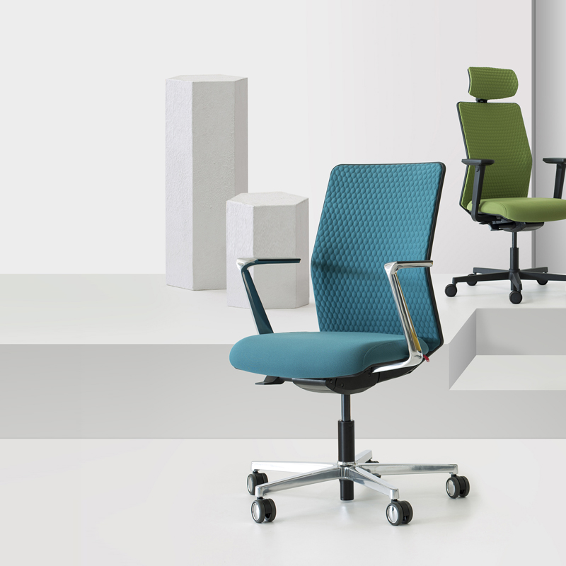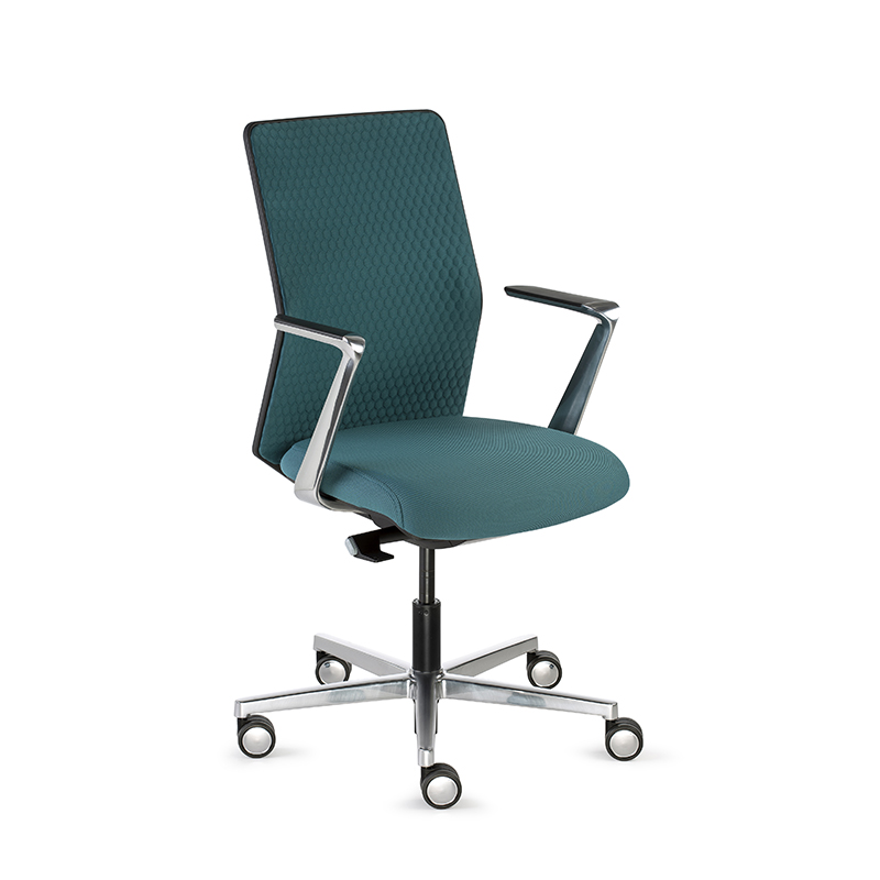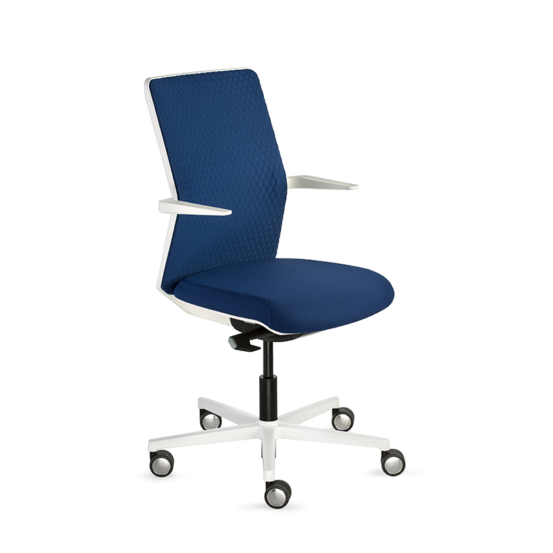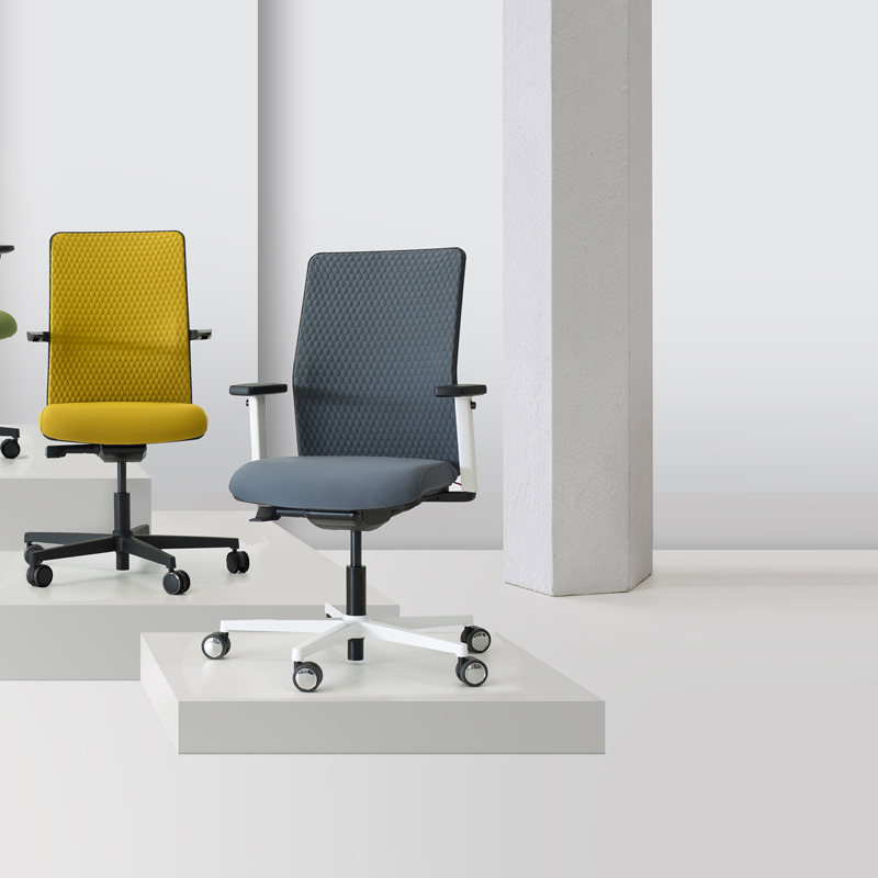 EQUIS, la nouvelle chaise opérationnelle fait son entrée sur le marché en tant que modèle avec des signes identitaires contenus, mais en même temps avec une personnalité claire, mise en valeur par les accoudoirs que sortent du dossier.