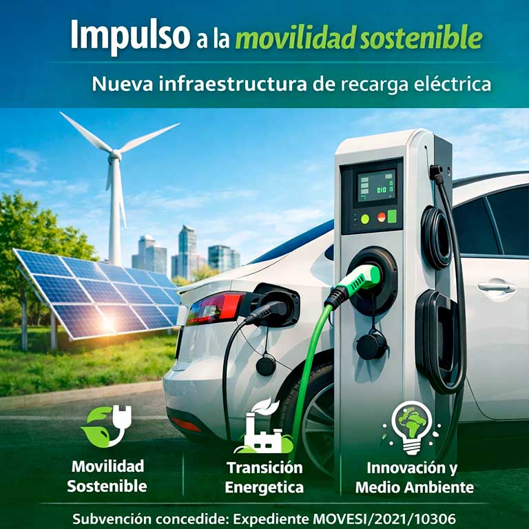 Hemos recibido una subvención destinada a la implantación de infraestructura de recarga para vehículos eléctricos, correspondiente al expediente MOVESI/2021/10306. Esta ayuda forma parte de las iniciativas orientadas a fomentar la movilidad sostenible y avanzar hacia un modelo energético más eficiente y respetuoso con el medio ambiente.