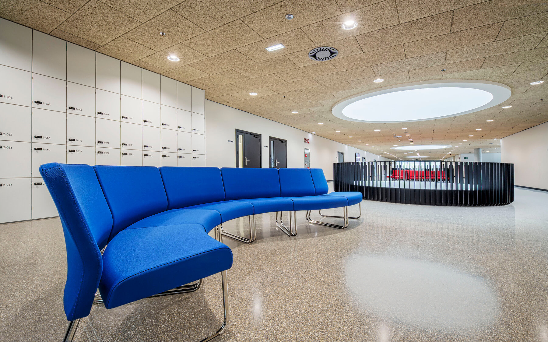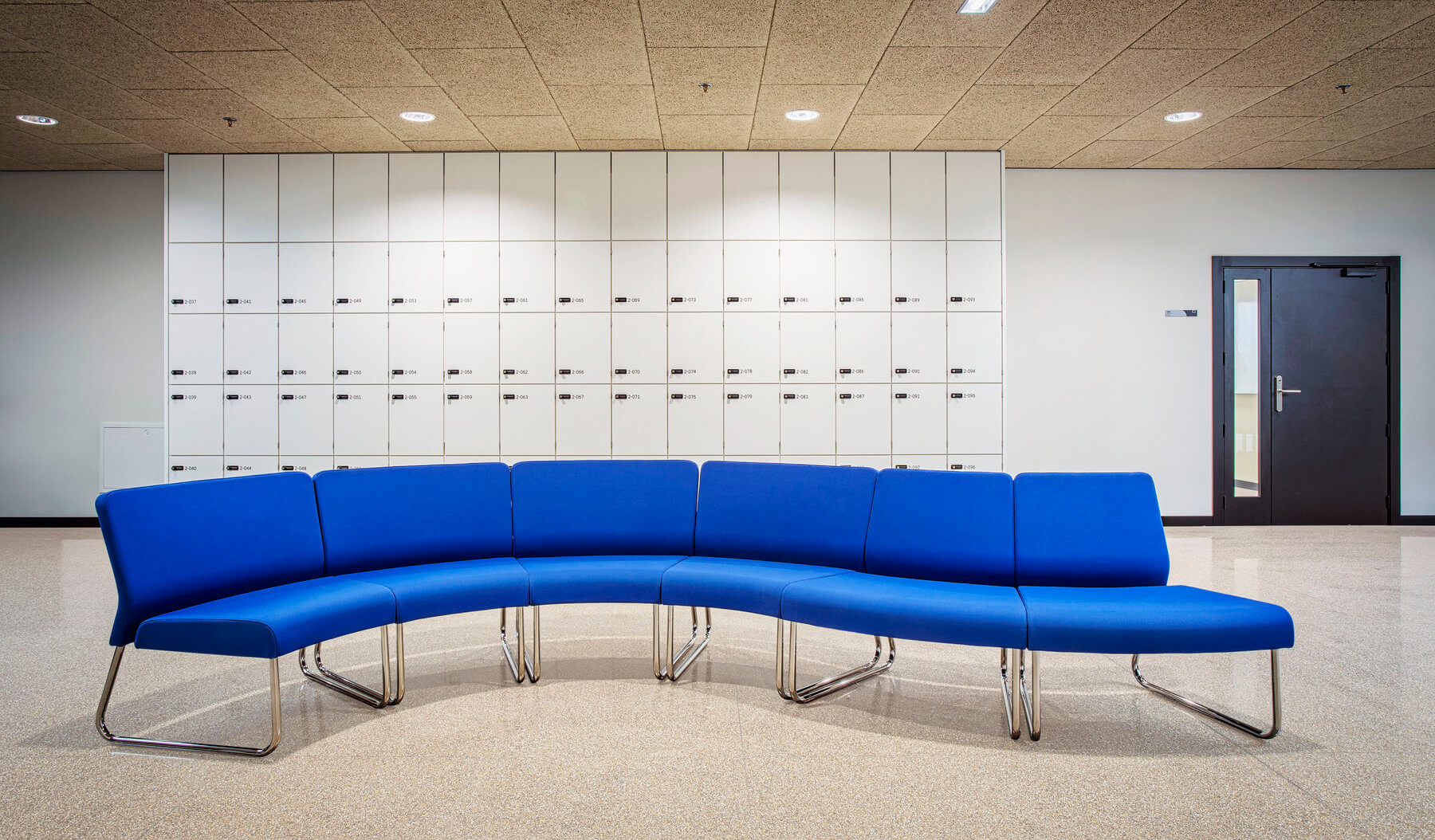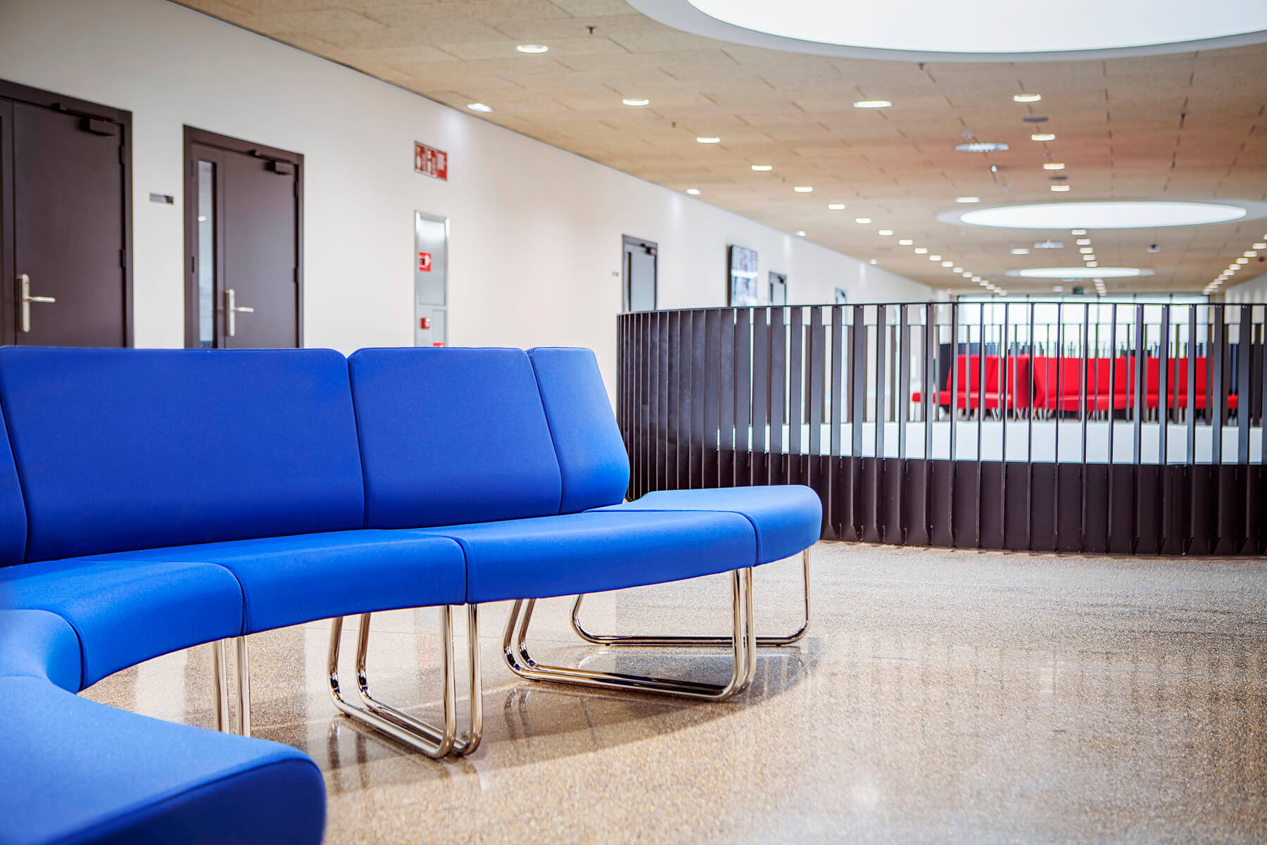 A los responsables de ELITE OFICINAS les convenció el diseño modular de SLASTIC, que permite jugar con módulos y configuraciones, que, combinando con los tapizados, crean y delimitan el espacio, dando lugar a varias zonas de descanso en sus amplios pasillos. También ha sido crucial en esta elección el sistema de unión de la colección SLASTIC, que asegura que las formas escogidas se mantengan inalterables en su uso cotidiano.