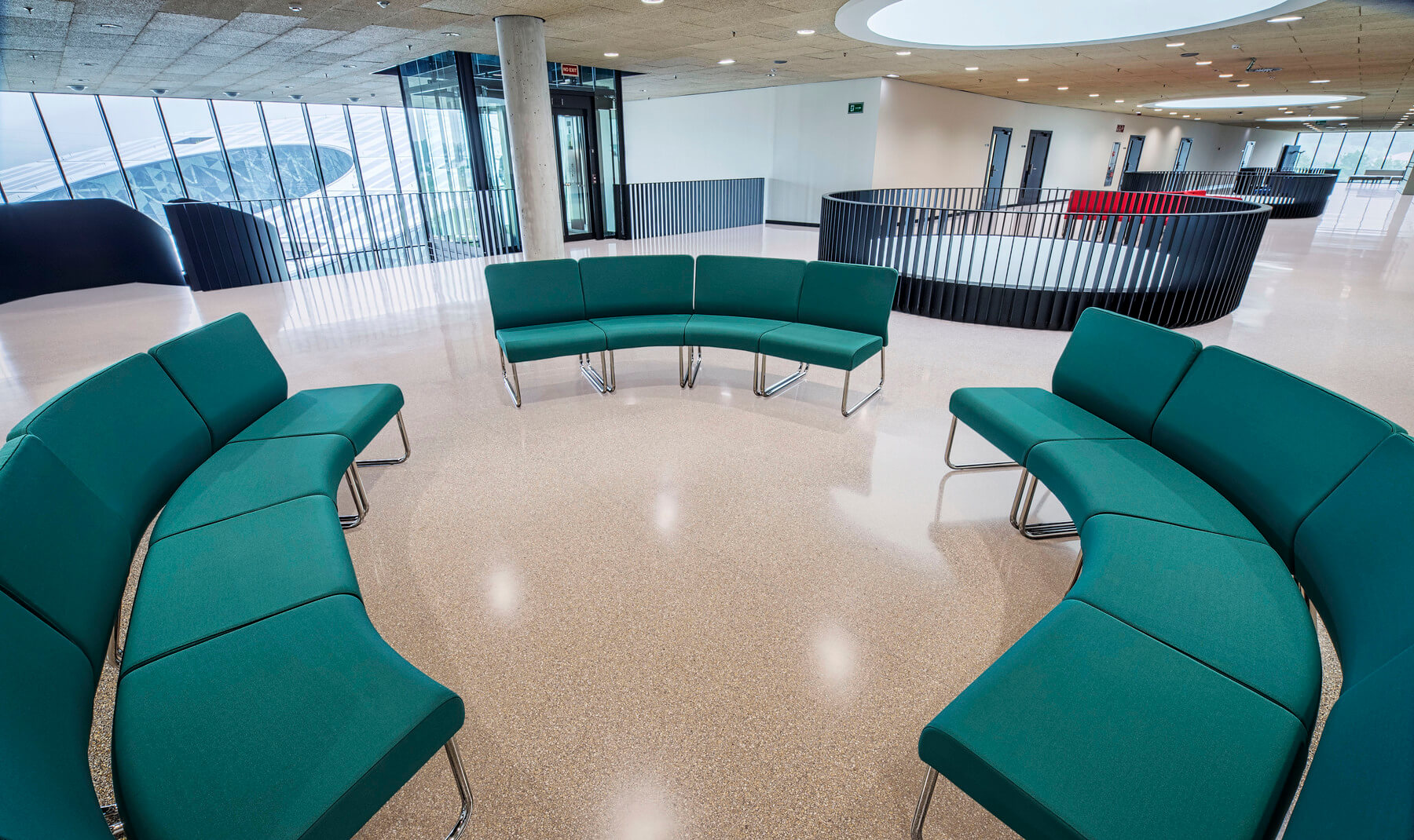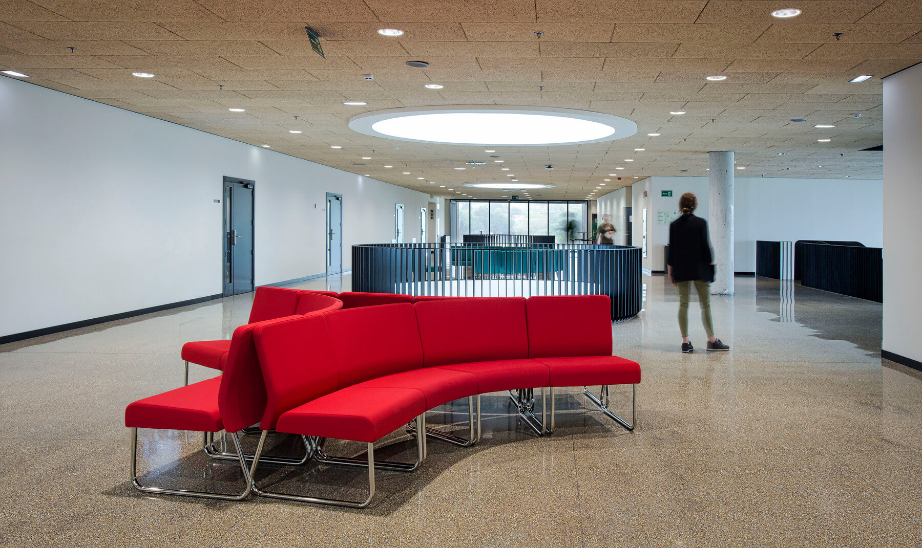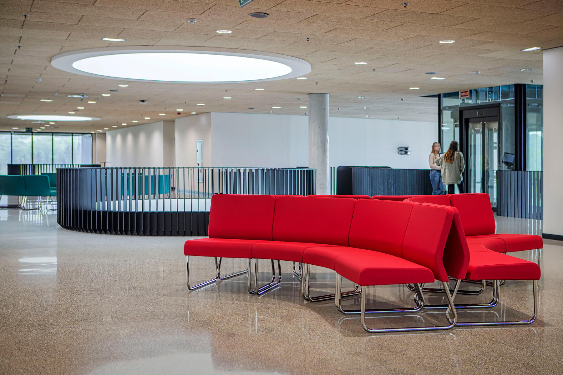 A los responsables de ELITE OFICINAS les convenció el diseño modular de SLASTIC, que permite jugar con módulos y configuraciones, que, combinando con los tapizados, crean y delimitan el espacio, dando lugar a varias zonas de descanso en sus amplios pasillos. También ha sido crucial en esta elección el sistema de unión de la colección SLASTIC, que asegura que las formas escogidas se mantengan inalterables en su uso cotidiano.